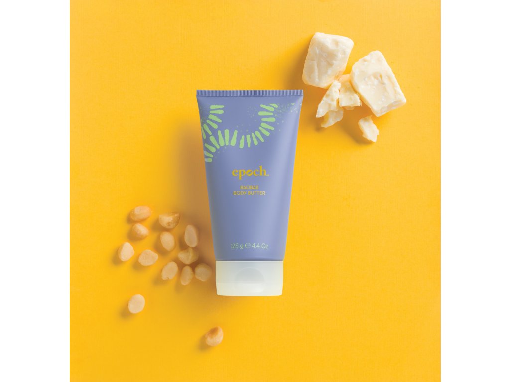Cesta do nitra Afriky s Epoch Baobab Body Butter. Tento bohatý krém obohacený o několik o pleť pečujících látek a etnobotanické výtažky poskytuje intenzivní hydrataci. Výsledek: pleť, která je pružná a vypadá zdravě!